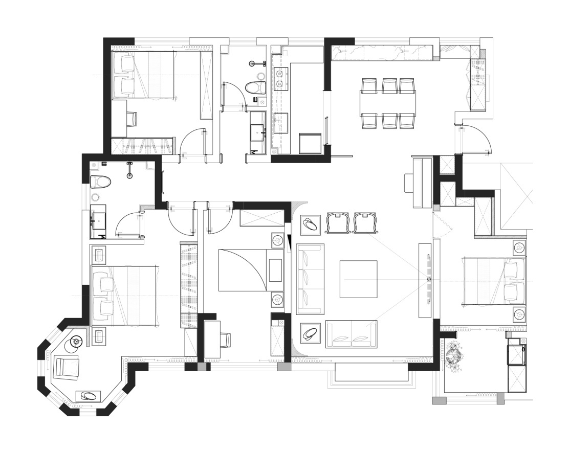 不同于客餐廳的新中式的風格,臥室想要營造的感覺是舒適自然的,褪掉一天工作的辛苦和勞累,擁有一個舒適的空間可以休息補充力量。
