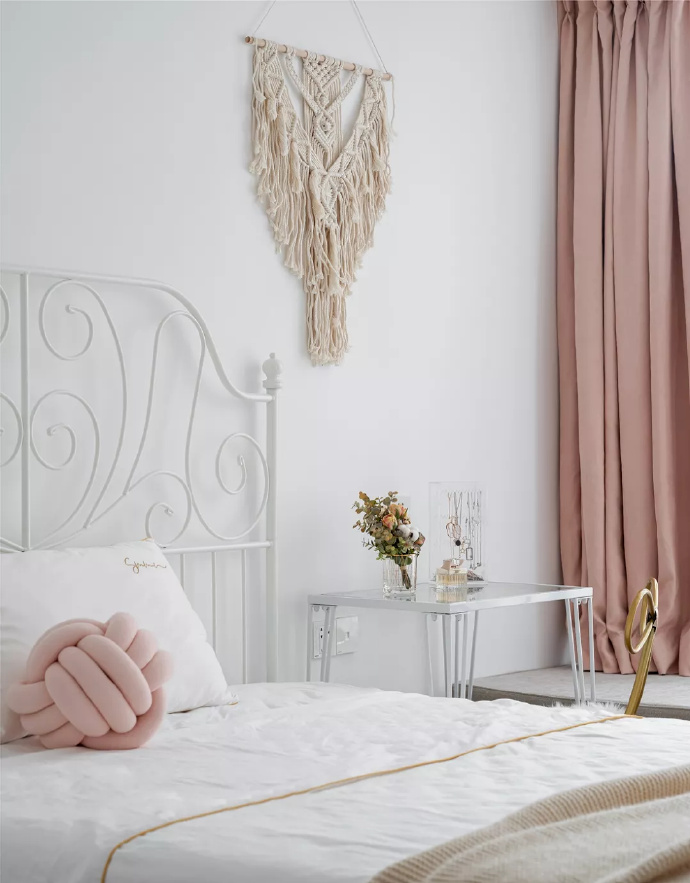 電視背景局部以紋理動感很強的巖板裝飾,創(chuàng)造出與眾不同、個性十足的視覺效果,將它與大白墻搭配,達(dá)到了整體和諧的狀態(tài)。